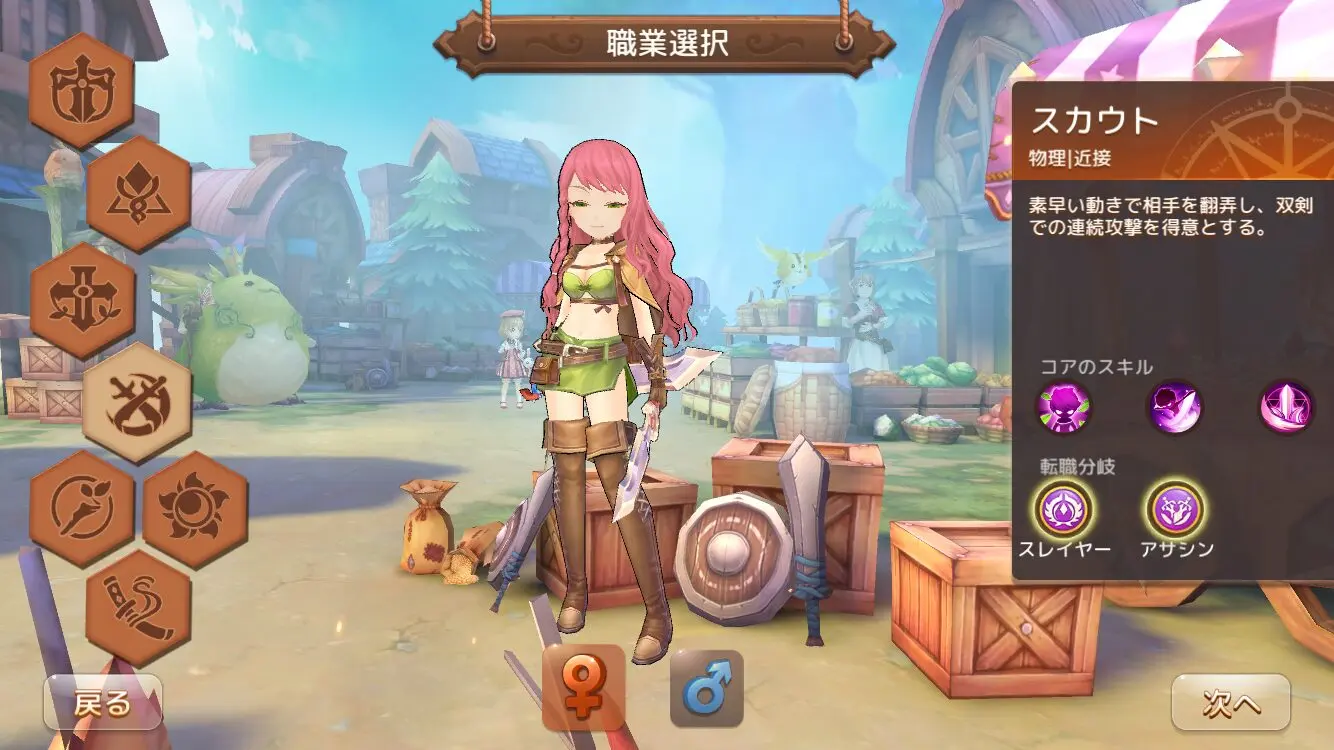 機動力と手数に優れたトリッキーな職。上位職「スレイヤー」は高火力で人気。動き回りながら戦うスタイルが好きな方に。