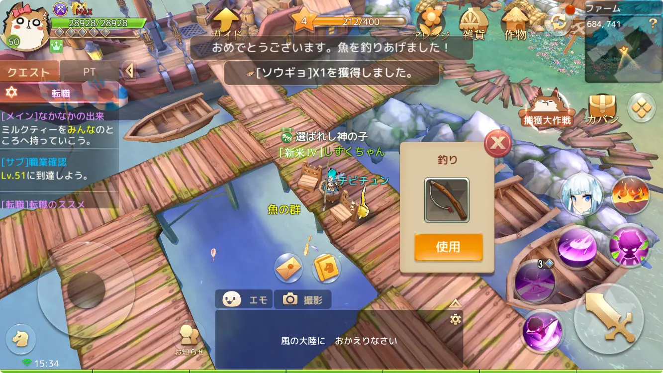 魅力② 戦闘だけじゃない!ファーム・釣り・料理のライフコンテンツ