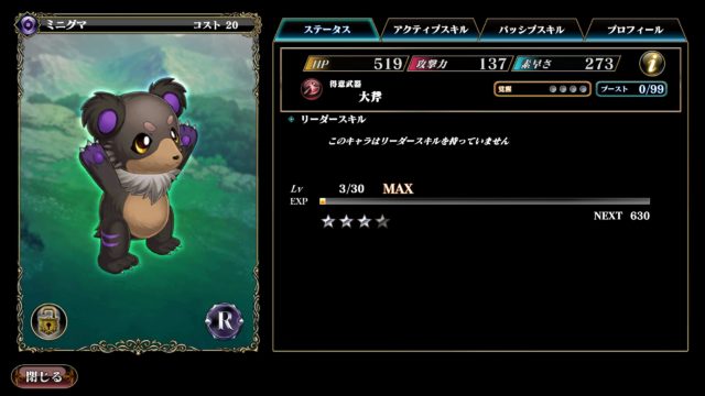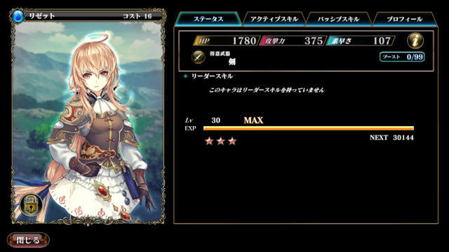 癖がなく使いやすい、序盤から安定した活躍が見込めるキャラクターです。ストーリーの流れで入手できるので、序盤のパーティ固定メンバーとして育てておくと攻略がスムーズになります。