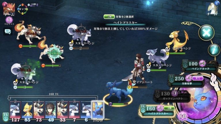 スキルごとに設定されたインターバル値で、TUが小さいほど次の行動が早く回ってきます。強力なスキルほど次の行動が遅くなるというトレードオフが生まれ、バトルに深みを与えています。