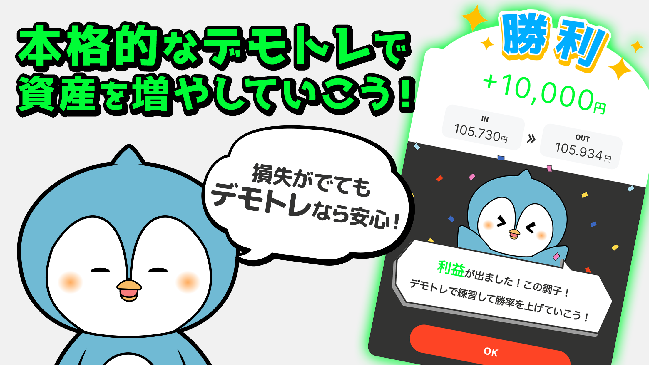 | 注意事項 | デモトレード専用アプリのため実取引・損益の受け渡しは発生しません |