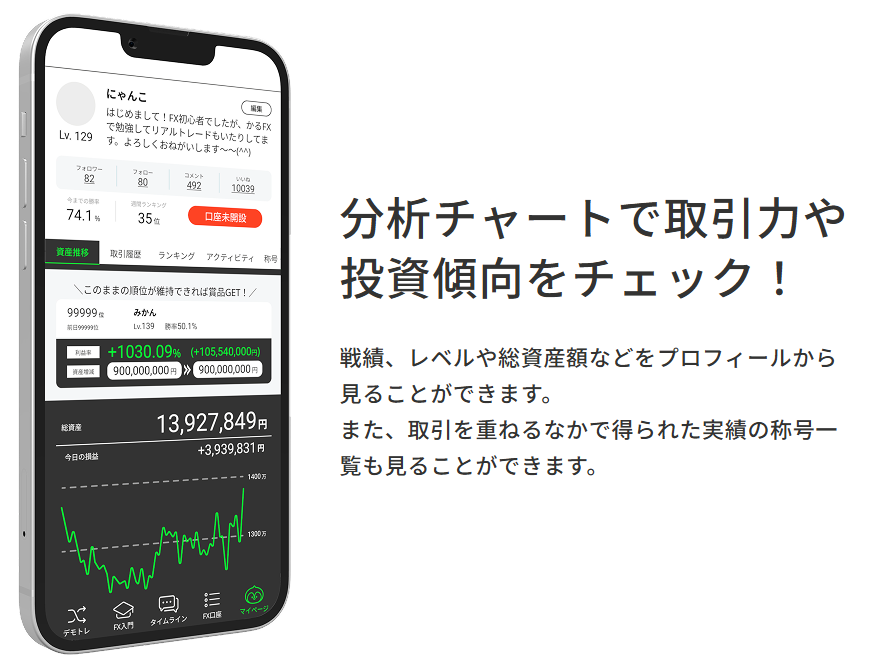 App Storeの無料ファイナンス部門で1位を獲得したこともあるアプリで、日本最大級のFXコミュニティとして多くのユーザーに利用されています。FXを始める前の練習場として、ぜひ参考にしてみてください。