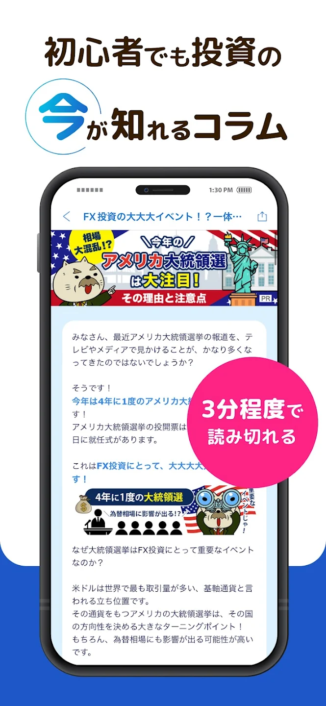FXって聞くと「難しそう」「リスクが怖い」というイメージを持っている方も多いと思います。でも、FXなびはそういった不安をそのまま入り口にしてくれるアプリ。