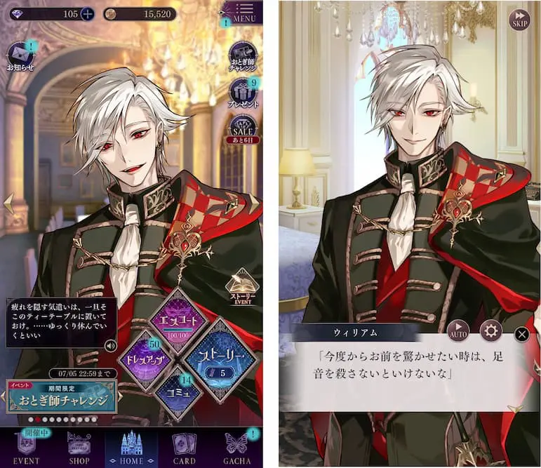 定期的にストーリーイベントが開催されます。通常のエスコートとは別に「イベントエスコート」が解放され、専用パラメーター「ラブ度」を貯めることでイベントストーリーを読み進めていく形式です。