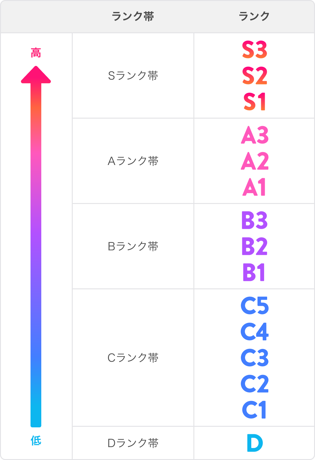 IRIAMのライバーにはコミュニティランクという指標があり、D〜S3の15段階に分かれています。