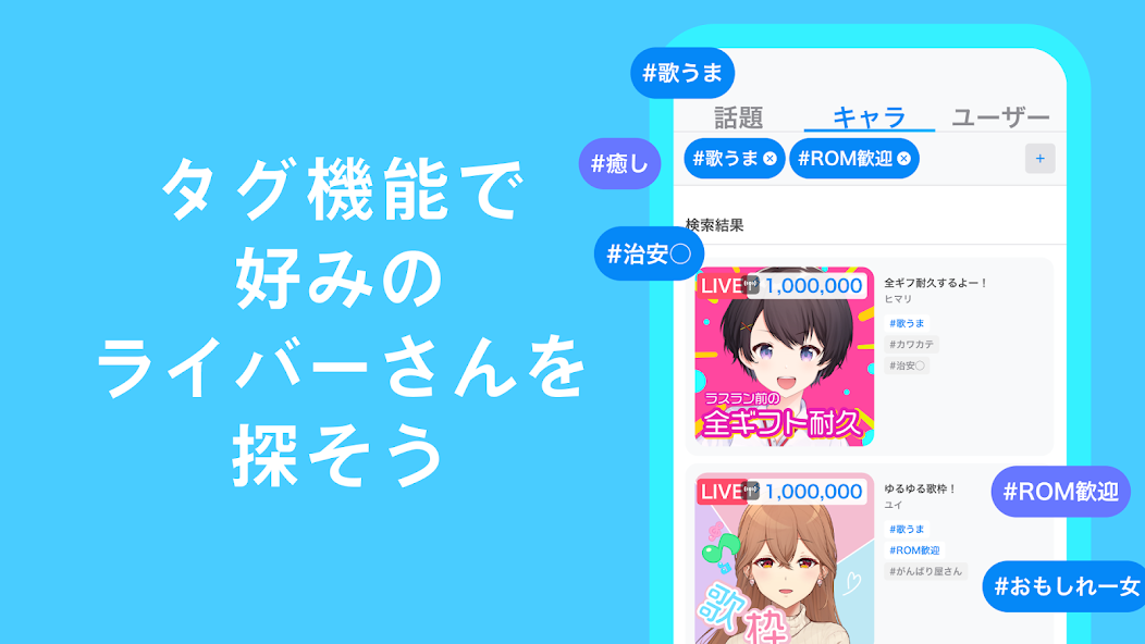 気になるタグを起点にいろいろなライバーを探しやすくなっています。