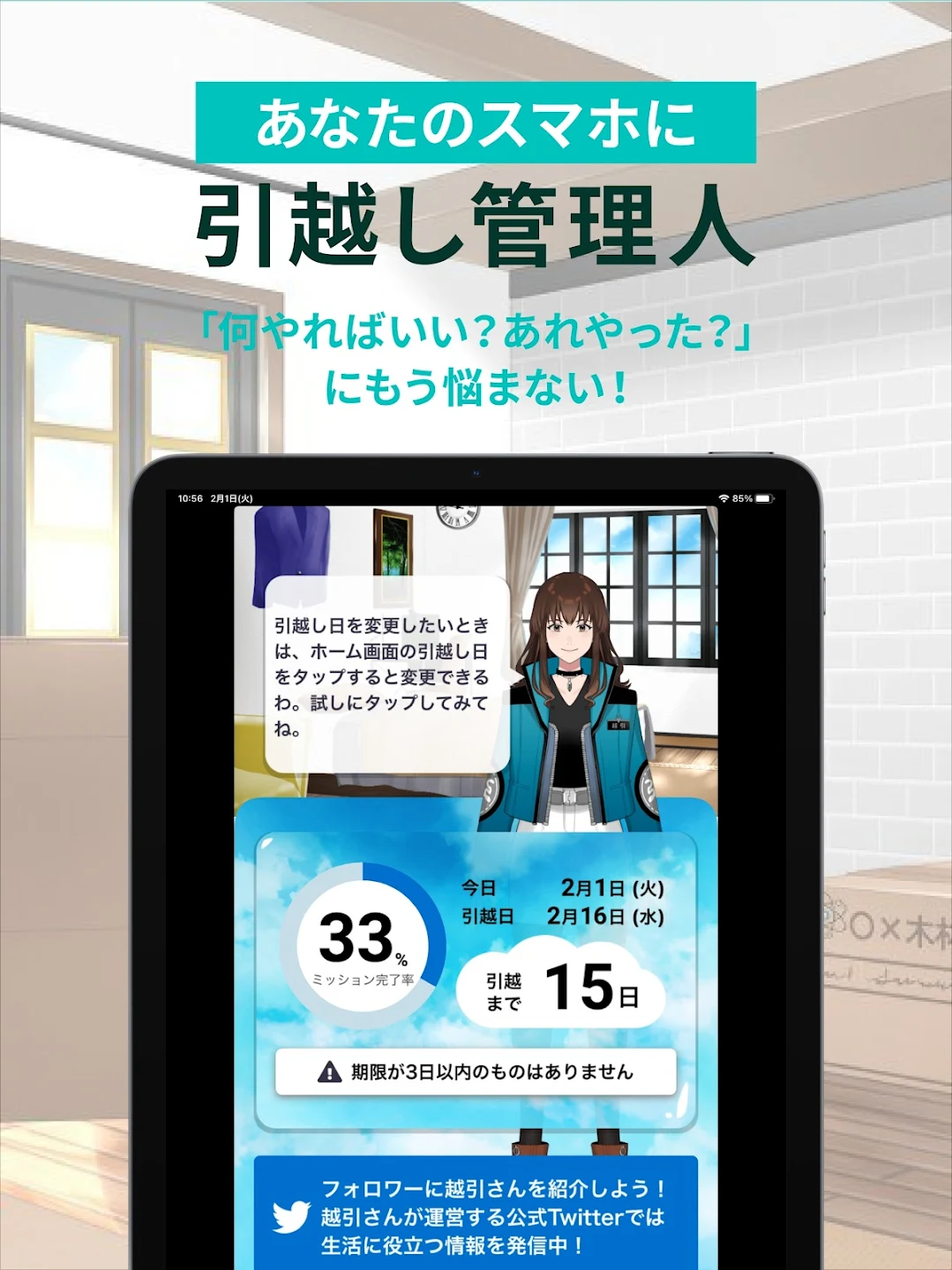また、「越引さん」というキャラクターがタスクをミッション化してくれる仕掛けも独自の工夫。ゲーム感覚でタスクをクリアしていけるので、面倒な引越し準備が少し楽しくなります。引越し経験が少ない人や、初めての一人暮らしを控えた人に特に向いているアプリだと感じました。