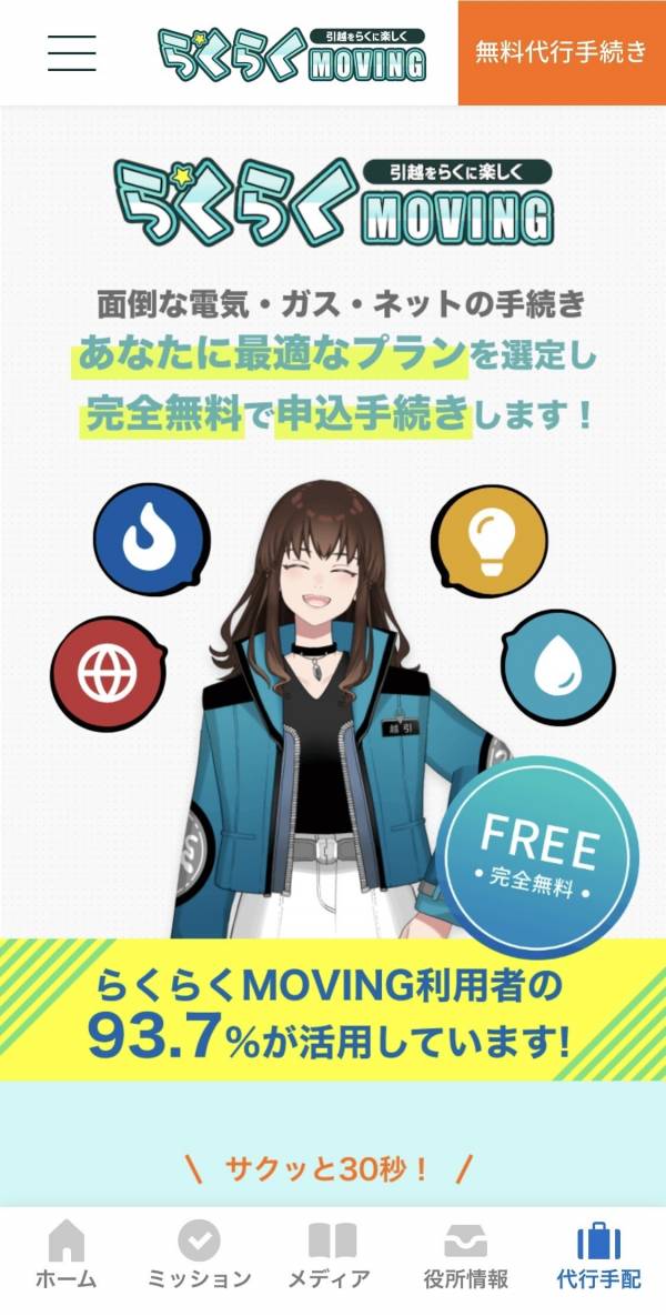 らくらくMOVINGは完全無料で使えるアプリです。アプリ内課金はなく、有料プランへの切り替えも一切ありません。やることリストの生成・役所検索・ライフライン代行手配・引越し業者の一括見積もりなど、すべての機能が無料で利用できます。