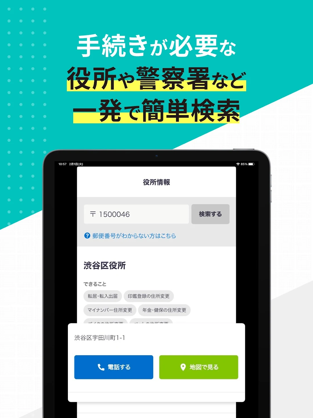 魅力③ 役所・手続き先の情報がアプリ内で一発検索