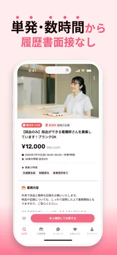 一般的なスポットワークアプリでは出てこないような、本格的な看護業務の求人が揃っているのが最大の違いです💡