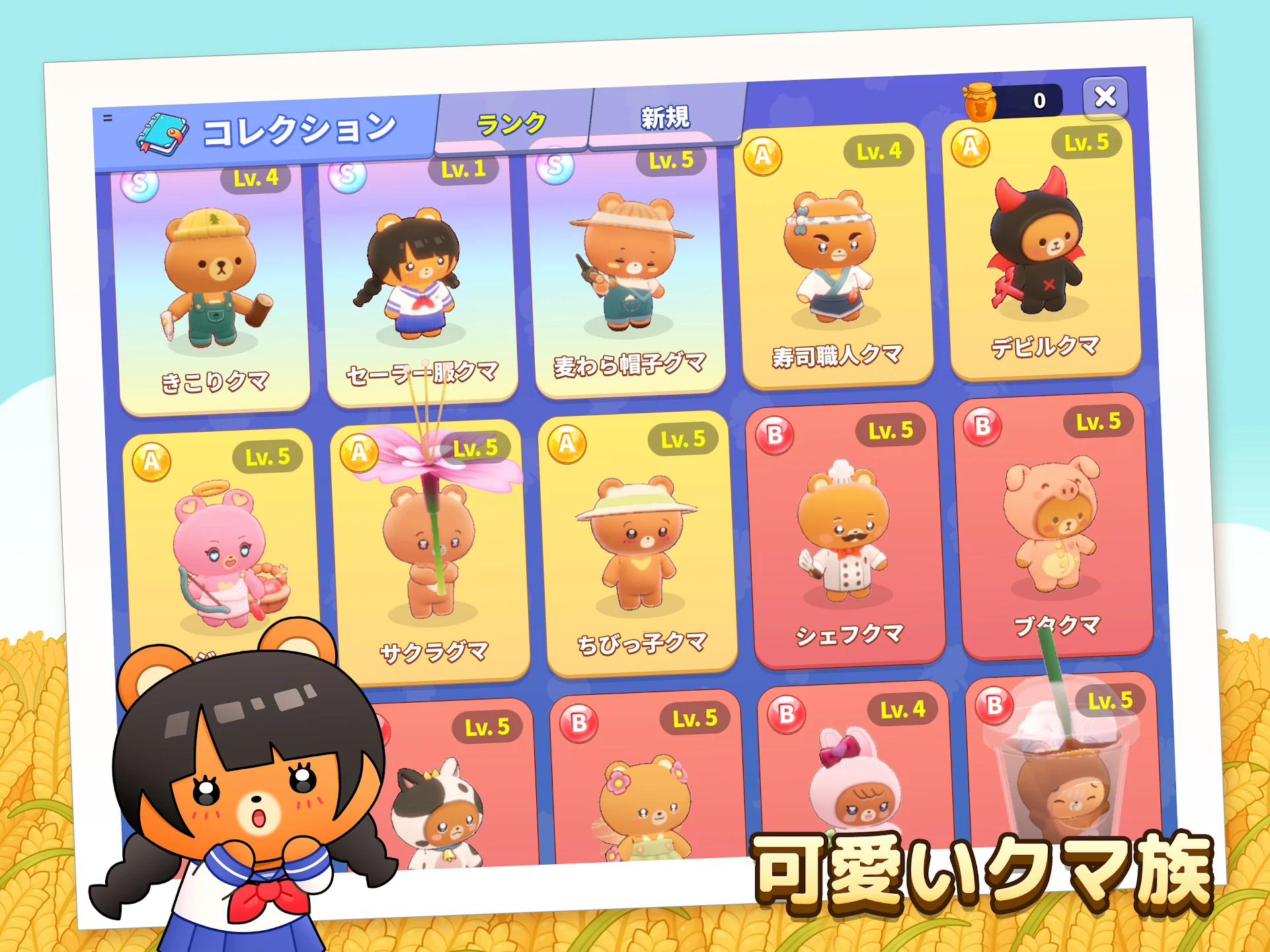 クマ族たちは見た目も個性バラバラで、配置するだけでコインや経験値、アイテムを自動的にもたらしてくれる頼もしい仲間たち。つまり、気に入ったキャラを農園に置いておくだけで恩恵がじわじわ積み重なっていくんです。集めれば集めるほど日々のプレイがラクになって、農園がどんどん発展しやすくなります。