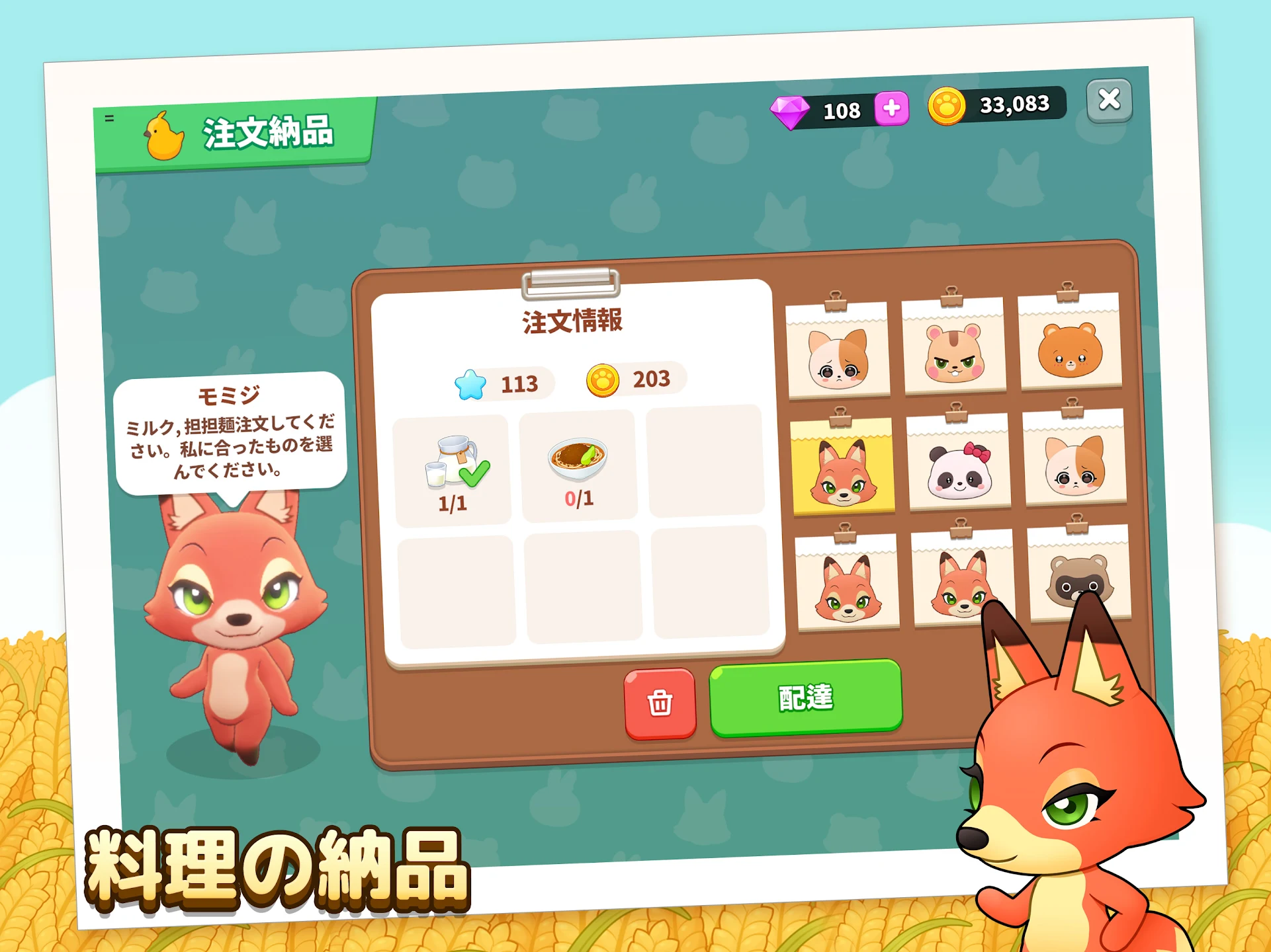 スタミナ制ではないので「スタミナが切れた」で強制終了になることもなく、ゆったり自分のペースで進められるのが好印象。忙しい日でも数分ログインして収穫するだけでOKだし、のんびりできる日はじっくり納品をこなす……という柔軟な遊び方が自然にできます。