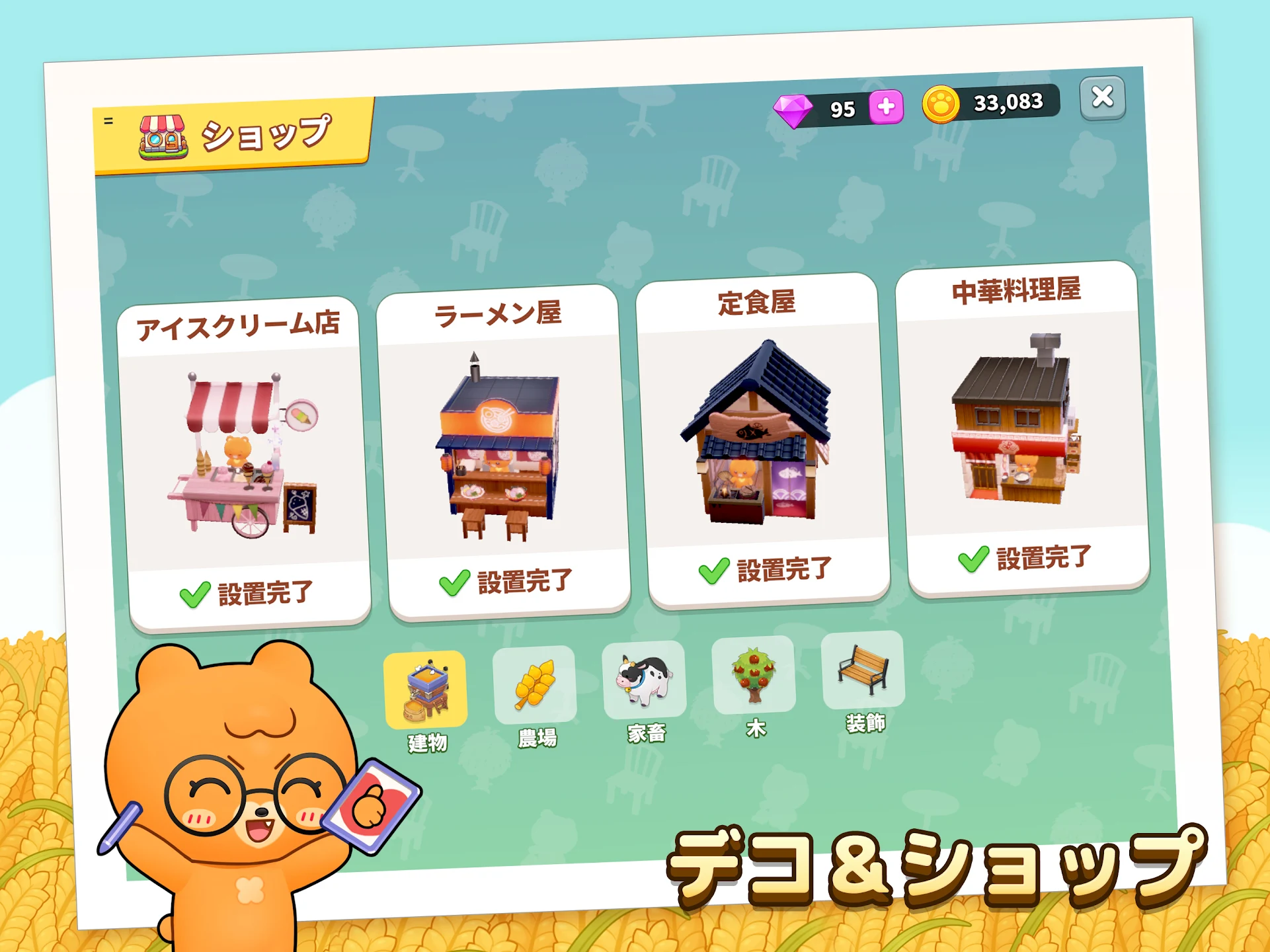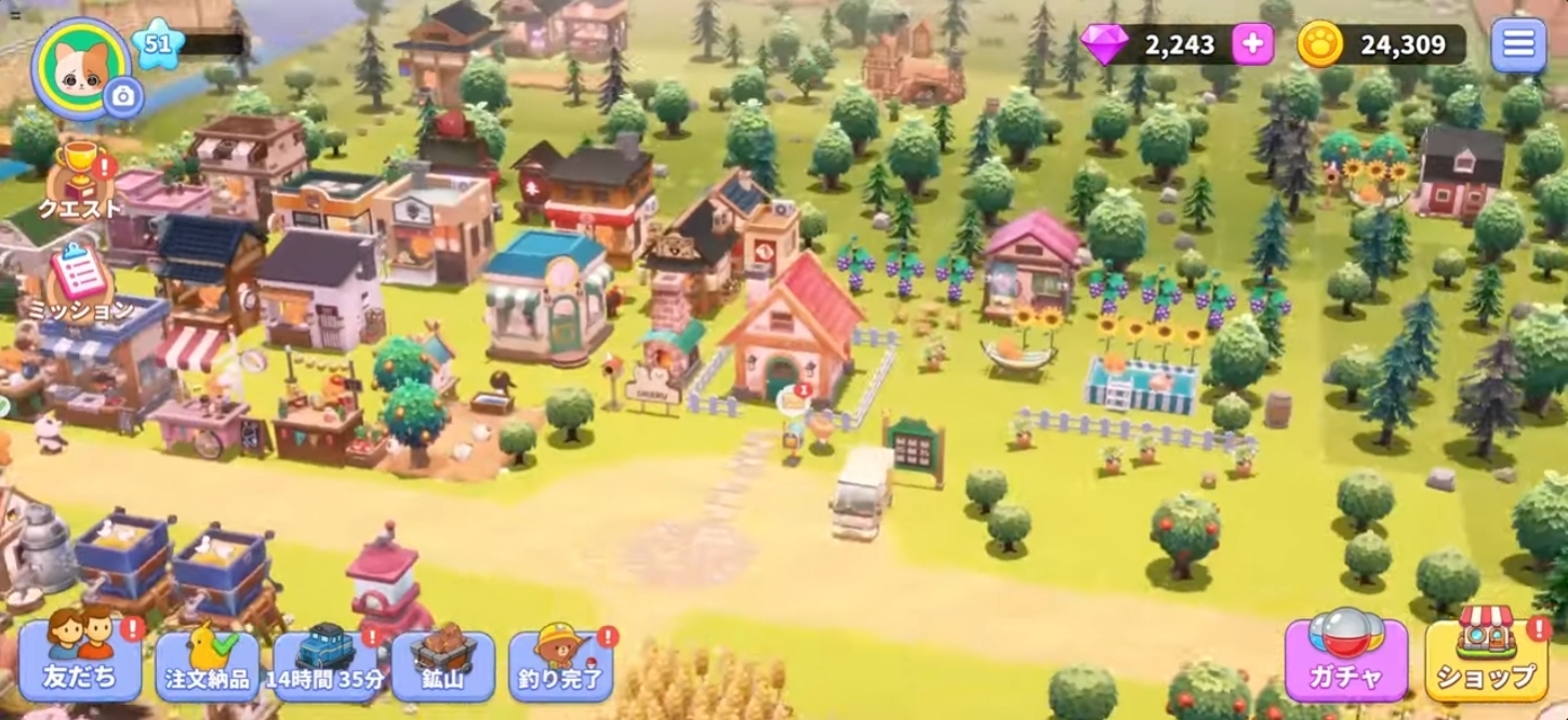 個性豊かなクマ族キャラを集めたり、鉱山採掘で宝石を作ったり、友達の農園を訪問したりと、やれることが思ったよりずっと多い💡