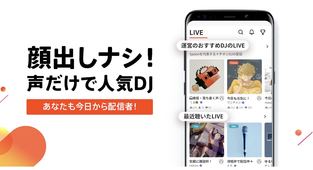 Spoon(スプーン)は、音声配信に完全特化したライブ配信アプリです。