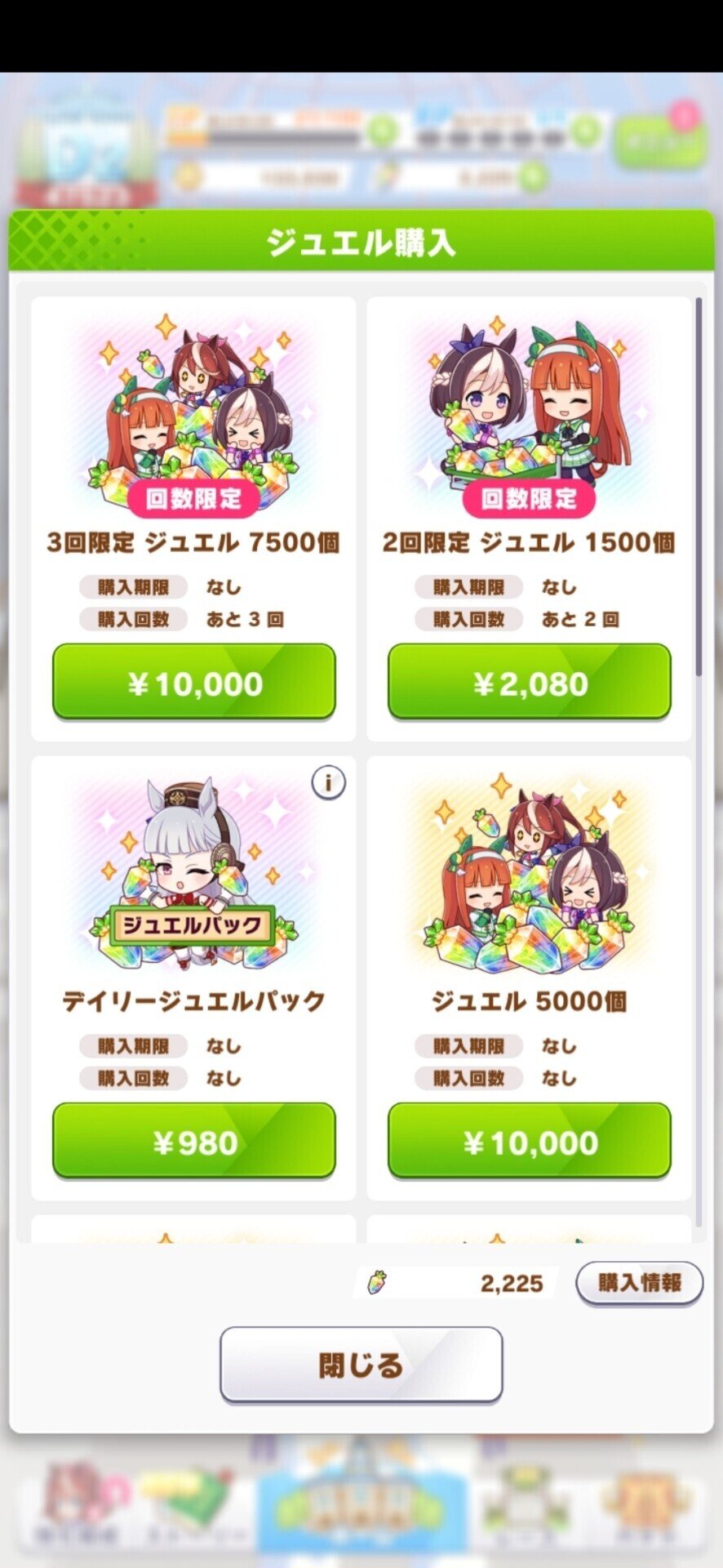 課金の主な使いどころはジュエルによるガチャ。強力なサポートカードを持っているほど育成が有利になりますが、配布カードやイベント産のカードを上手く使えば十分戦えます。長くプレイしているトレーナーで無課金・微課金の人は普通にたくさんいます。