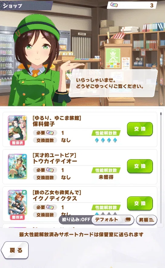 注意したい点として、サポートカードは完凸(同カード5枚集めることで全強化)することで真価を発揮するものが多いため、本格的に強さを追求すると費用が高くなりやすいゲームではあります。のんびり育成を楽しむ分には無課金でも十分満足できるので、自分のプレイスタイルに合わせて付き合い方を決めるのがベストかなと思います。