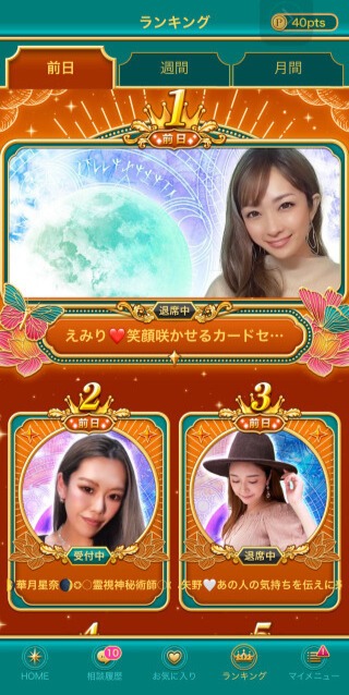 各占い師のプロフィールページでは得意な占術・相談テーマ・過去のレビューを確認できます。ランキングも参考になりますが、ビギナーステージの先生でも高評価を受けている方が多いので、予算を抑えながら良い先生を探すことも十分可能です。