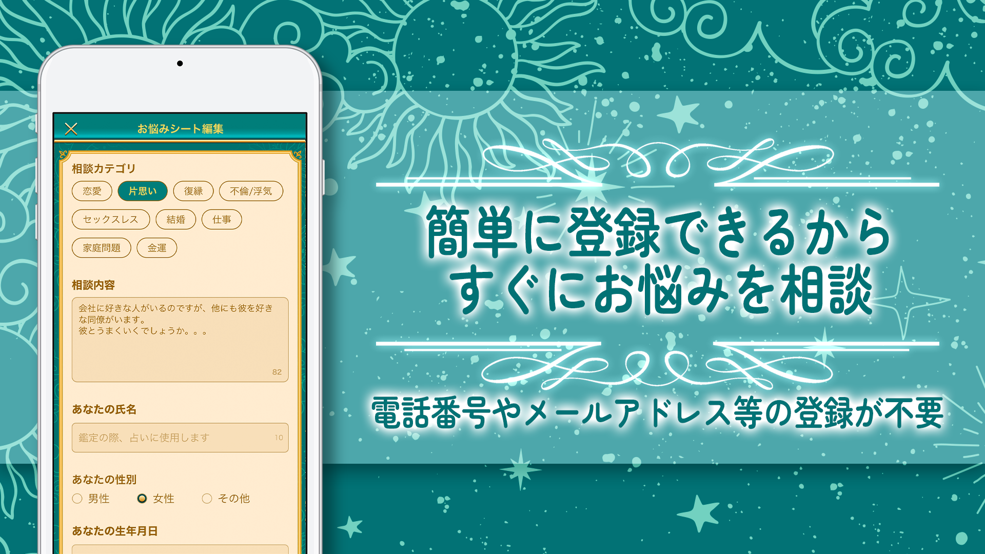 相談内容はあとから変更できるので、「今日は恋愛の悩み、来週は仕事の相談」というように、その時々の悩みに合わせて書き直すのがおすすめです。