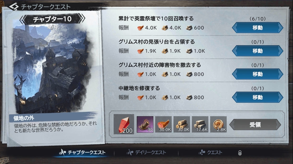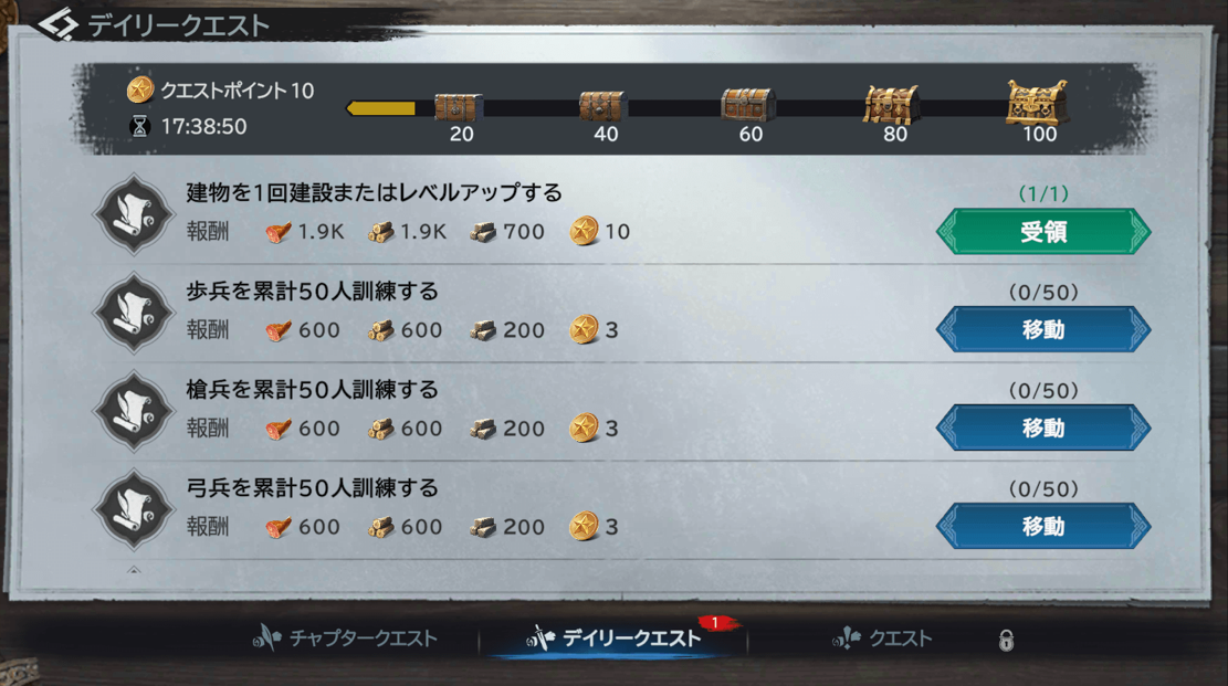 ① チャプタークエストに従って施設を建設・強化する