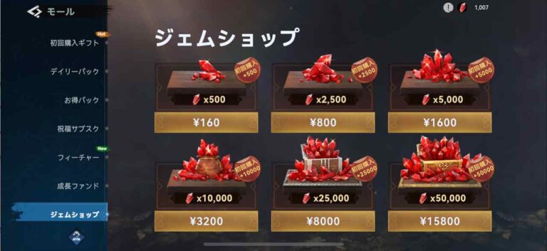 ・ジェム直接購入:ジェムショップで随時購入可能。各種パック商品も随時追加される