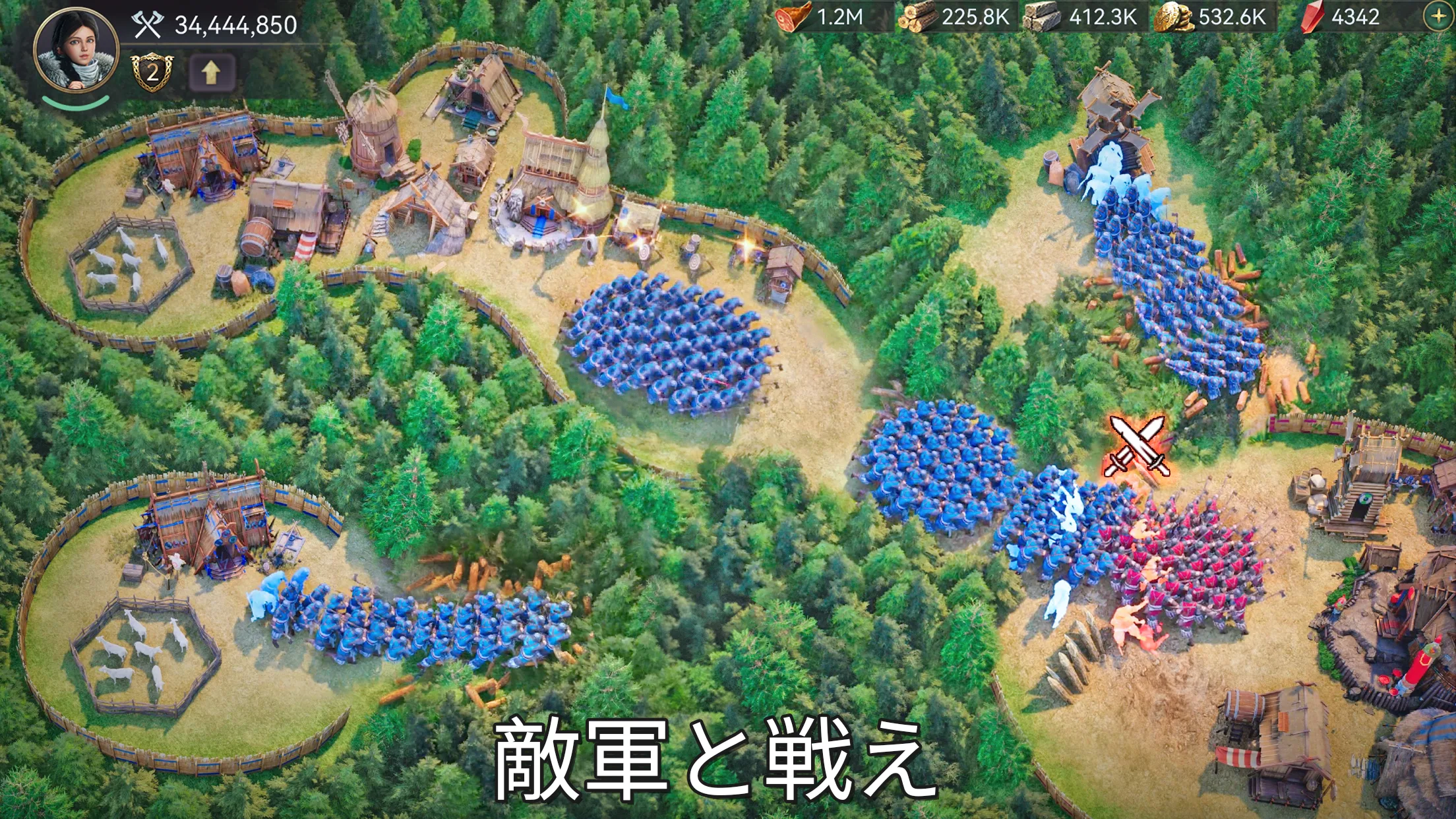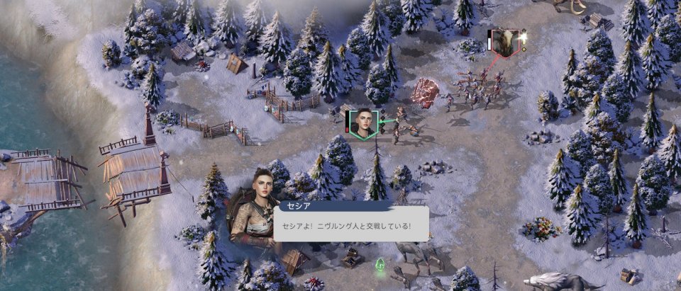木々を伐採して建築エリアを広げたり、農地を整備したり、軍事施設を増強したり……どんな集落にするかはすべて自分次第。特徴的なのが村人がマップ上をせわしなく動き回って資源を採集したり狩りをしたりしている点で、画面の中に生活感が感じられる演出が見ていて飽きません。また前述の通り、季節によってゲーム内のボーナスが変化する仕様があるため、季節に合わせた内政計画を立てるのも楽しみのひとつです。