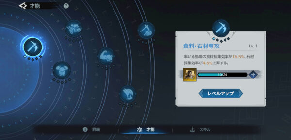 英雄ごとに率いるのに適した兵種が設定されているため、「どの英雄にどの兵を持たせるか」「主将と副将の相性はどうか」を考えながら部隊を編成する戦略性が光ります。戦闘が苦手な英雄でも鉱業や商業のスキルが高ければ資源採集の達人として大活躍できるので、どんなキャラクターにも活かし方があるのがうれしいポイントです。