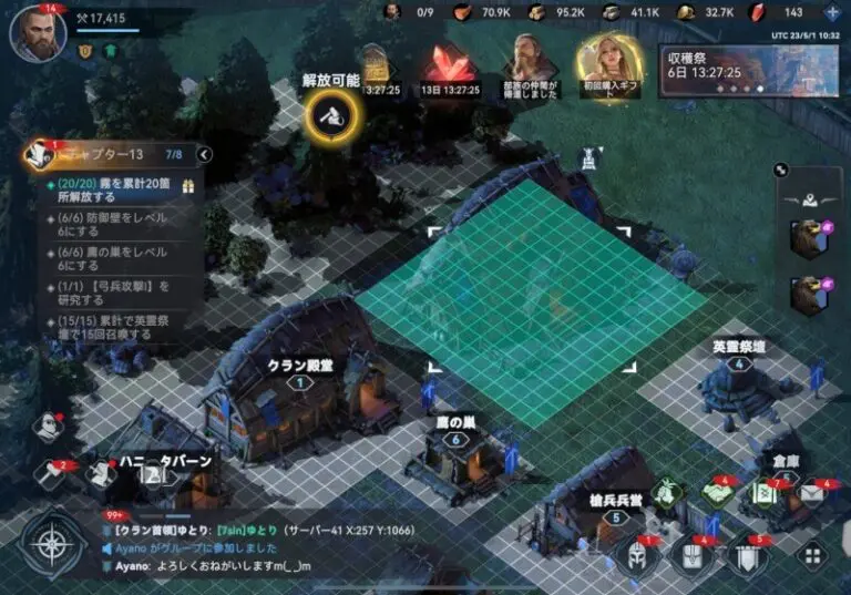 無課金でのプレイポイントとしては、イベントやクエストから得られる資源・加速アイテムを計画的に使うことが重要です。「5日ミッション」などの期間限定イベントは報酬が豪華なので積極的に参加しましょう。また活発なクランに所属すれば、クランギフトとして繁栄ポイントや資源が定期的にもらえるため、課金に近い恩恵を無料で得ることもできます。