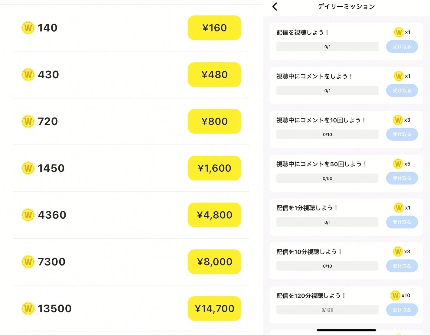 | 料金 | 基本無料(ギフト送信にわちゃコイン購入が必要) |