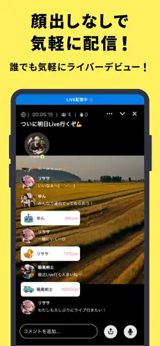 今回は、顔出し不要・声だけで始められる音声ライブ配信アプリ